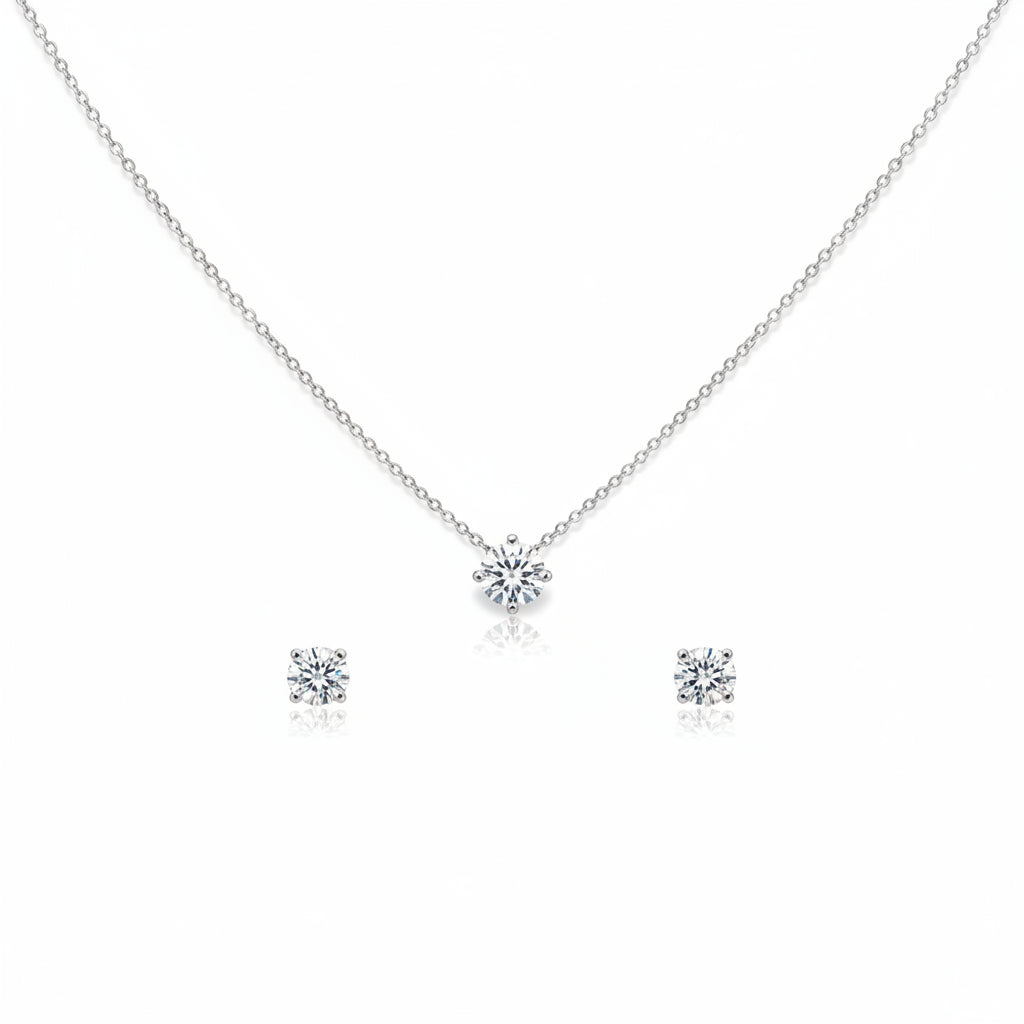 Pair this elegant solitaire set with a crisp white shirt for refined daytime sophistication, or style it with an evening dress for understated glamour.
