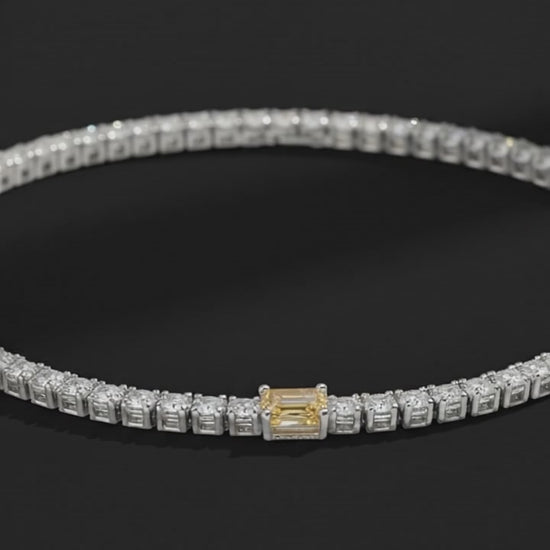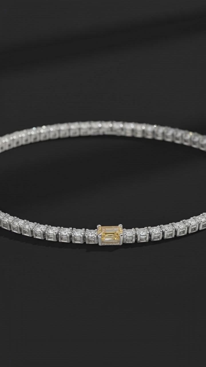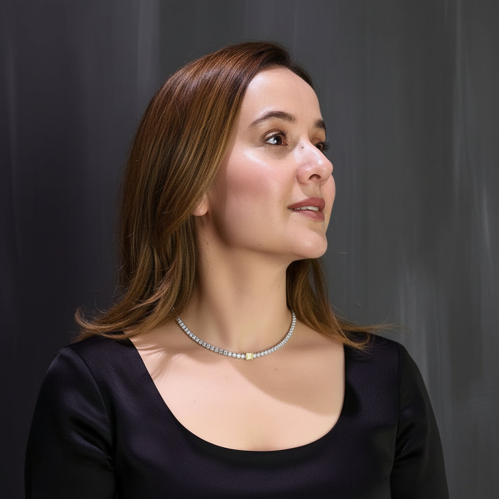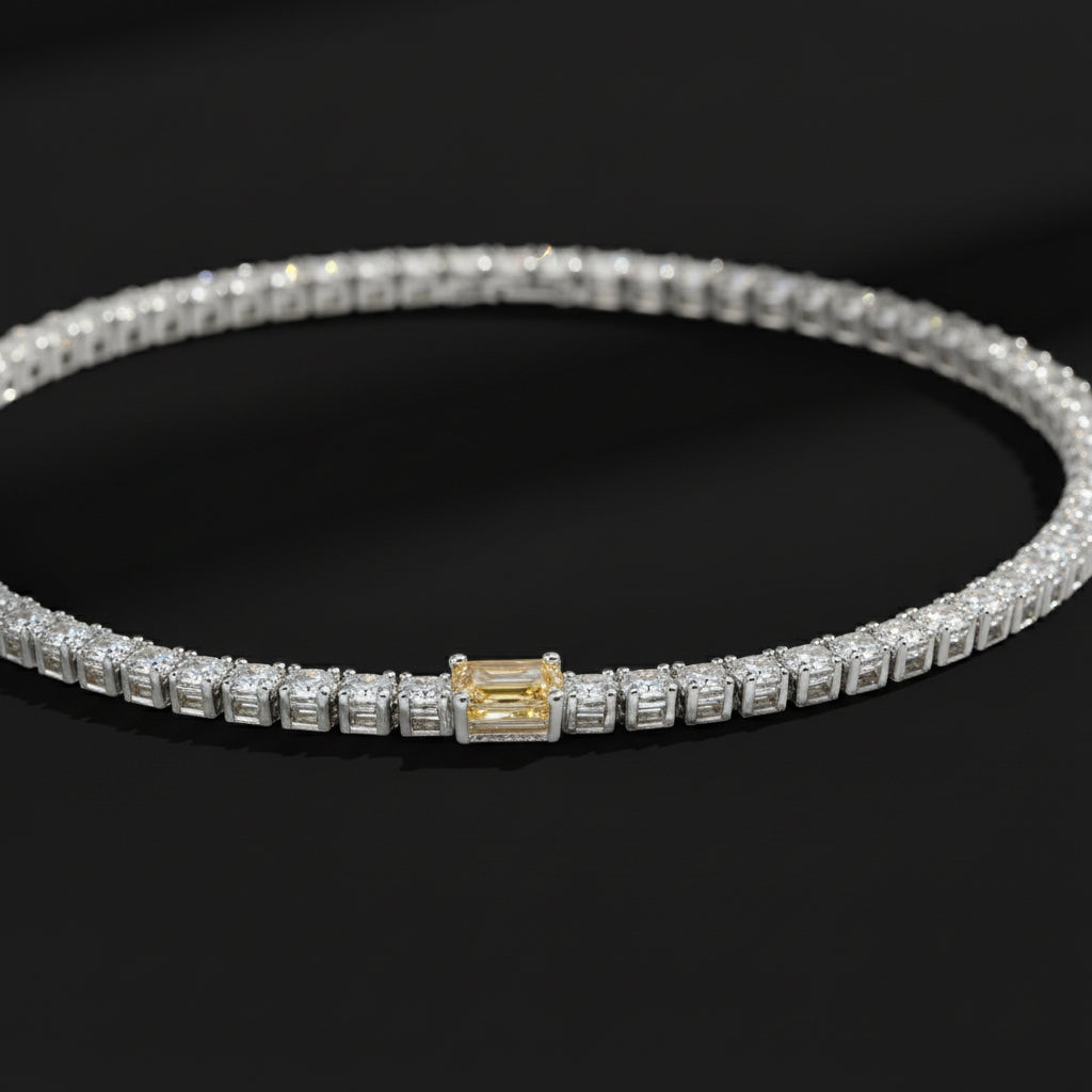 A seamless line of brilliance, the Imperial Strand by SDCreations is a refined celebration of symmetry and light. Designed with meticulously aligned high-grade cubic zirconia stones, this elegant silhouette wraps the neckline in uninterrupted sparkle. At its heart rests a distinctive emerald-cut centerpiece, subtly tinted for depth and dimension — a modern accent that elevates classic luxury.